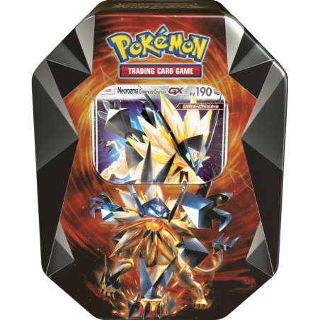 La boîte en métal Necrozma Prisme Necrozma Crinière du Couchant-GX du JCC Pokémon contient :