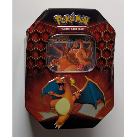 Cette boîte en métal Dracaufeu-GX du JCC Pokémon contient :